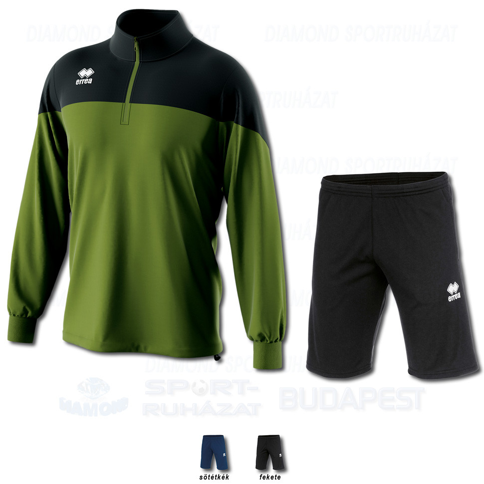 ERREA BLAKE & JAN SET cipzáras nyakú edző melegítő felső + bermuda nadrág SZETT - katonai zöld-fekete