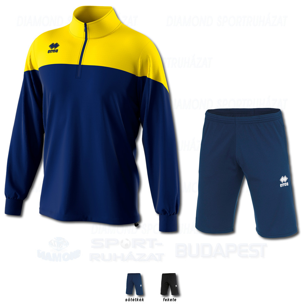 ERREA BLAKE & JAN SET cipzáras nyakú edző melegítő felső + bermuda nadrág SZETT - sötétkék-sárga